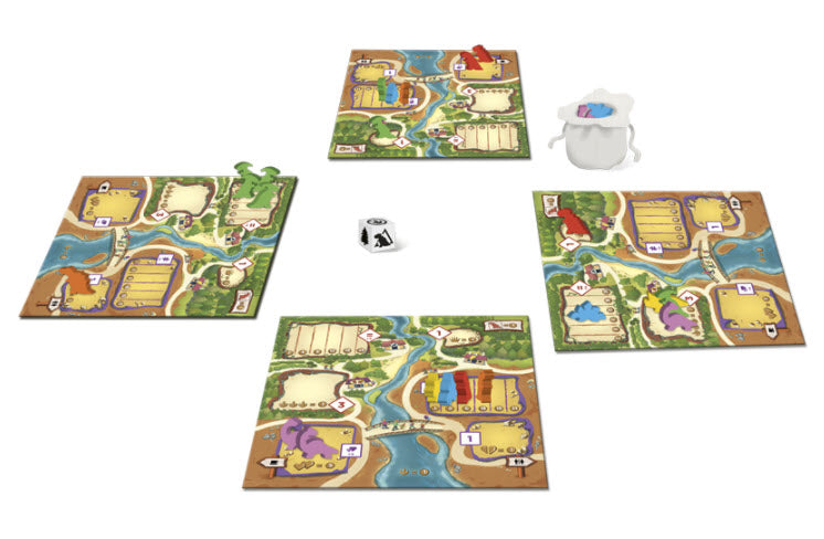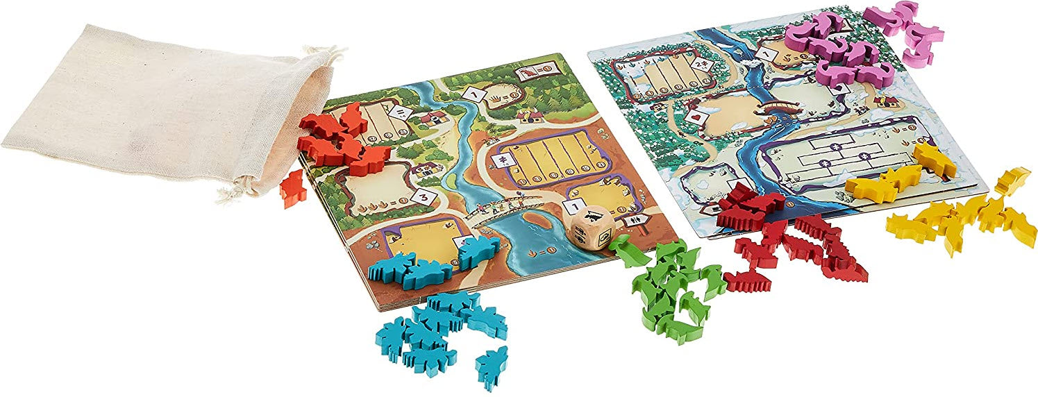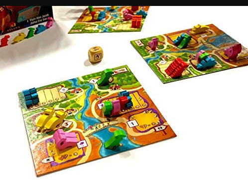 Your goal in Draftosaurus is to have the dino park most likely to attract visitors. To do so, you have to draft dino meeples and place them in pens that have some placement restrictions. Each turn, one of the players roll a die and this adds a constraint to which pens any other player can add their dinosaur.