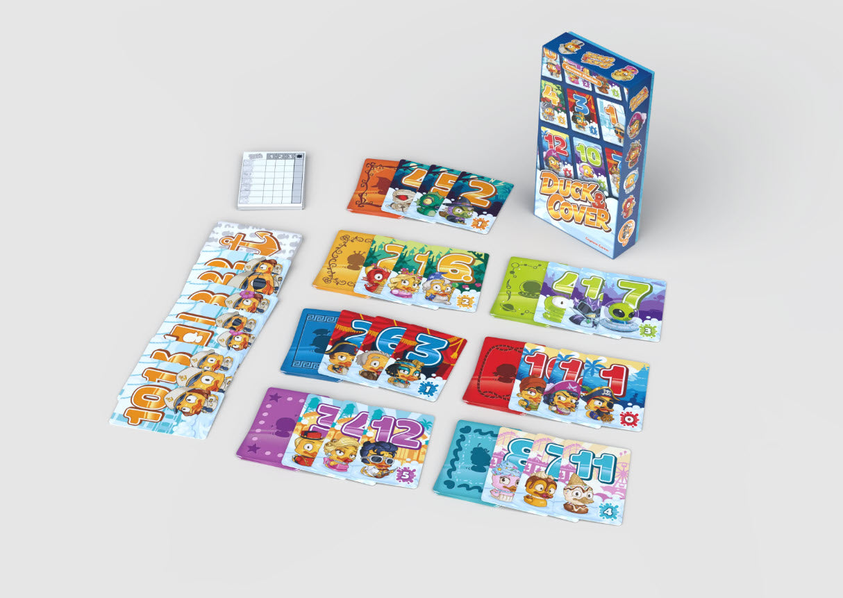 Duck & Cover is a 20 minutes goofy game in which you're trying to have the less water around your bathtub. You will either duck your ducks by moving them around your grid or cover your duck cards with other ducks. You have 3 rounds to get the lowest score and to not have water everywhere. Your ducks will love that for sure !
