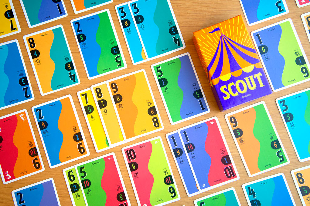 Scout was Nominated for Spiel des Jahres 2022. You have suddenly been appointed as the leader of a circus. Using the members of your circus you must put together a show that will beat out your rivals. Everyone on your team has a specific role. To fill in the gaps on your team, try to scout members away from other circus groups! With the addition of just one extra person you may set off an incredible chain reaction that helps you create a show that no other circus will be able to surpass. Will you battle with your current members? Or will you wait it out and try to recruit different ones? You will feel amazing when you make the right choices in this speedy card game!