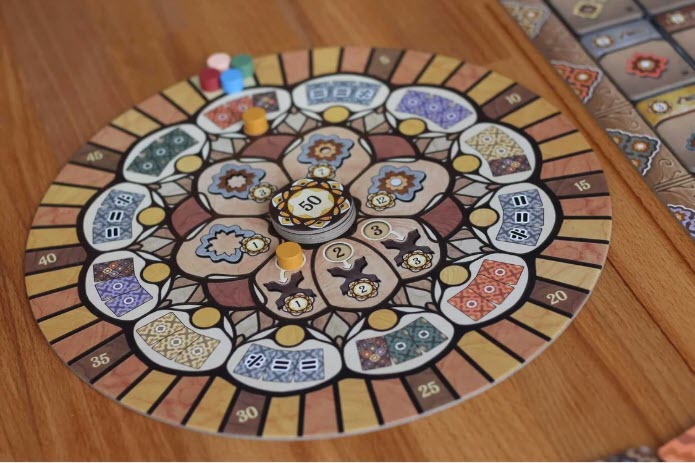 In Intarsia, players compete for the contract for the coveted redesign work on the parquet, embellishing it with stylish intarsias. To win the contract, players have to prove their skills by refining the floor with stylish inlays and outdoing their competitors with new tools.