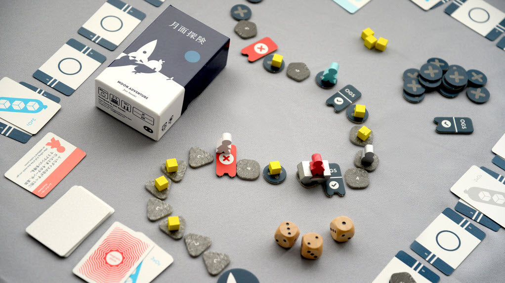 You are trapped on the moon due to a massive magnetic storm originating from the sun and all of the supplies have been scattered about the surface. You and your fellow astronauts are desperately trying to recover the scattered supplies, all while your oxygen levels are falling. Moon Adventure is a cooperative board game where everyone must work together to complete the mission. Trust in your wits and your friends to make it back alive!