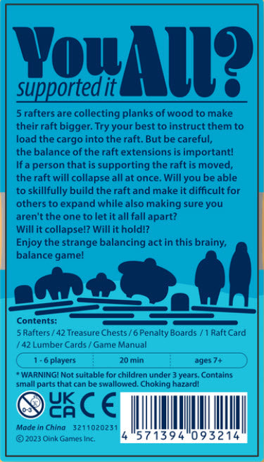 5 Rafters / 42 Treasure Chests / 6 Penalty Boards / 1 Raft Card / 42 Lumber Cards / Game Manual