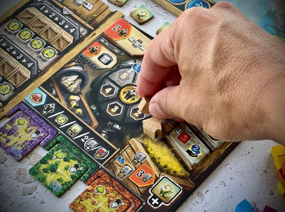 The mechanics of worker placement combined with polyomino placement to build your engine make this game stand out.