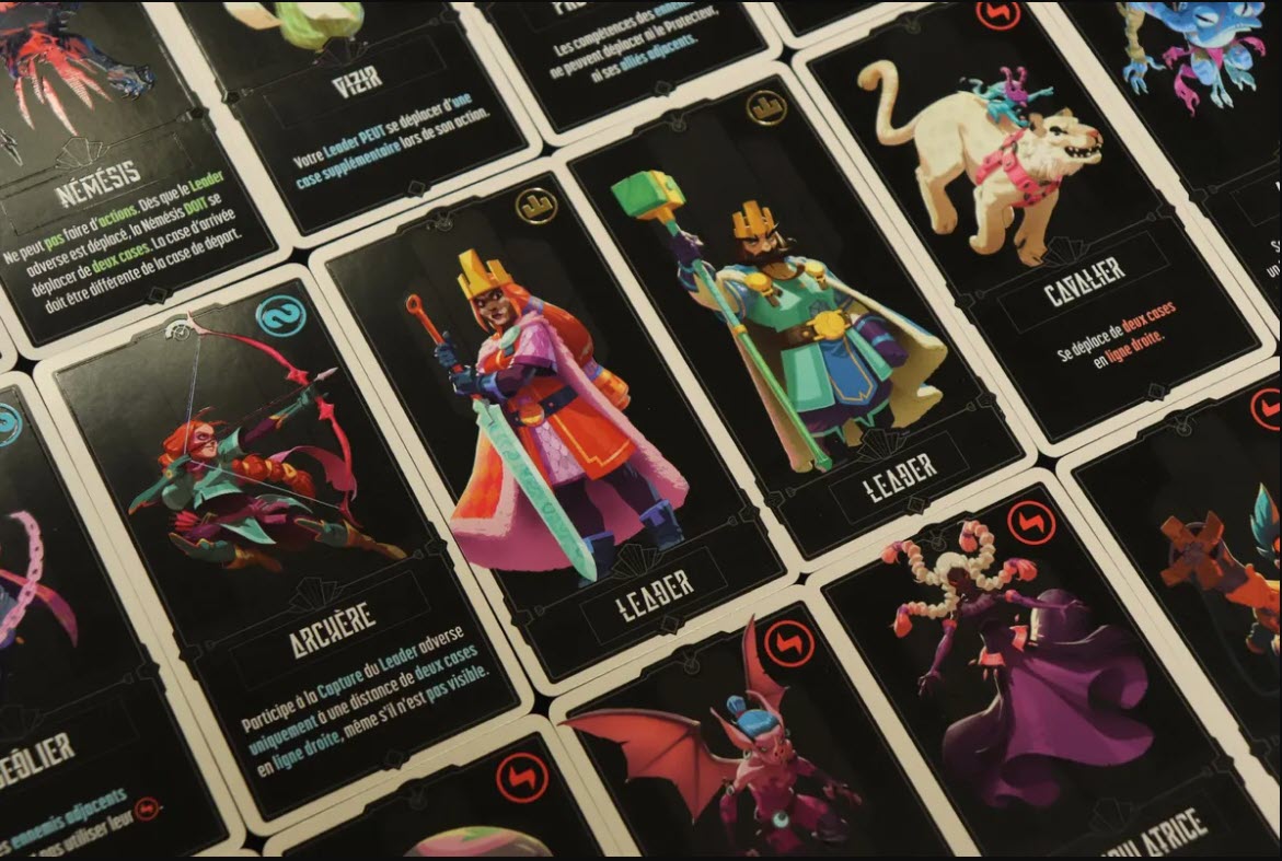 Create a team of unique Champions in order to defeat the opposing Leader! To win, either position two of your champions next to your opponent’s Leader to capture them, or skilfully manoeuvre so the opponent’s Leader is surrounded, leaving no adjacent empty spaces.