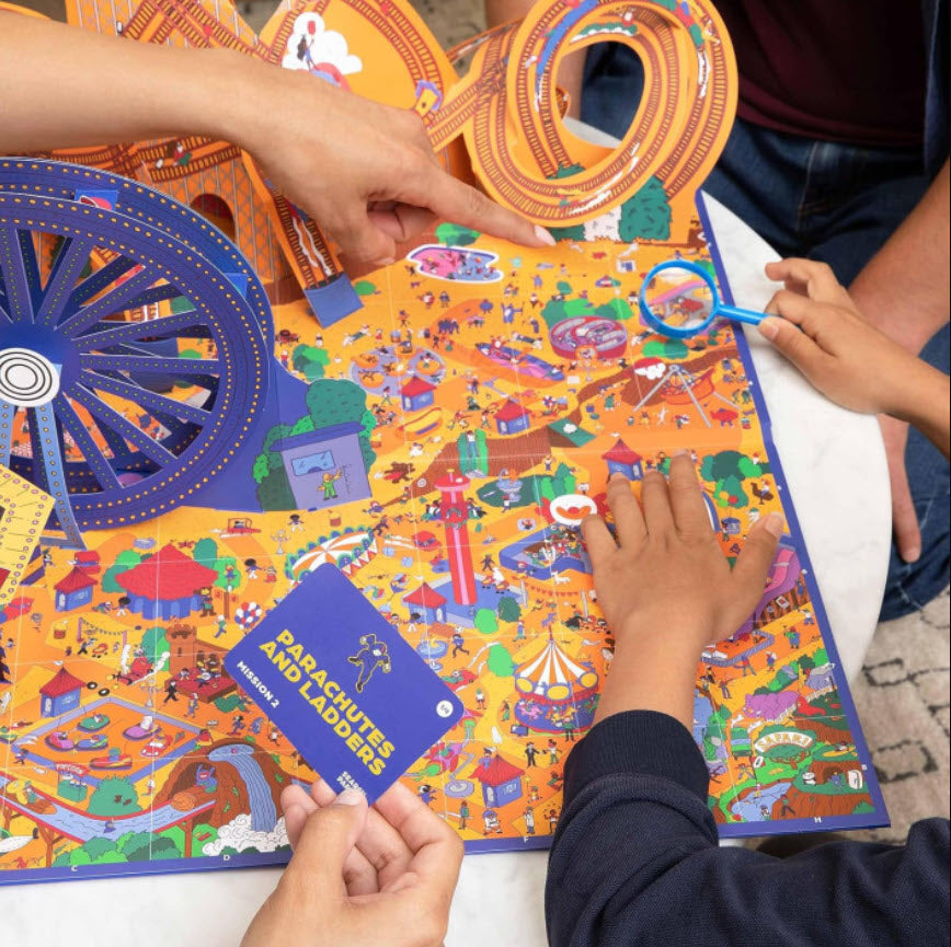 - Solve Mysteries, Find Objects: Search Party is a colourful adventure and found it game for kids. Open the 3D board and follow the characters across the pop-up amusement park attractions to solve mysteries, answer questions, and more! Once you're done, you can work your way through 300 search-and-find items.