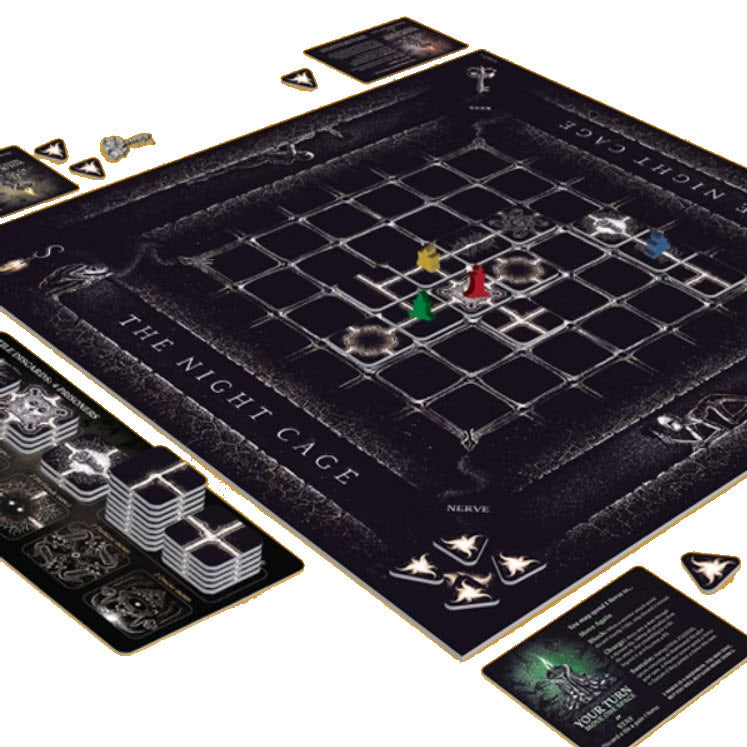 The Night Cage is a fully cooperative, horror-themed, tile-placement game that traps 1 to 4 lost souls within an otherworldly labyrinth of eternal darkness.