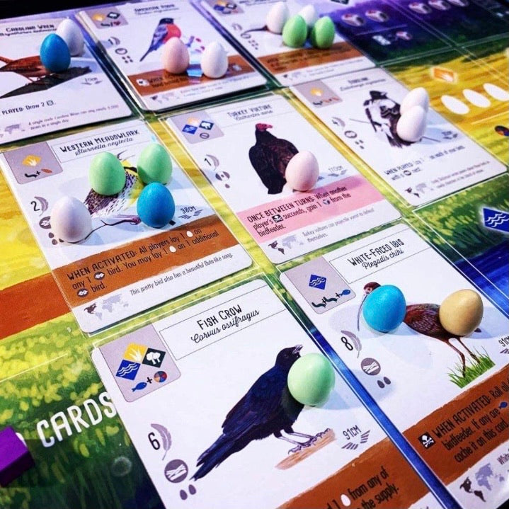 You are bird enthusiasts—researchers, bird watchers, ornithologists, and collectors—seeking to discover and attract the best birds to your network of wildlife preserves. Each bird extends a chain of powerful combinations in one of your habitats (actions). These habitats focus on several key aspects of growth: